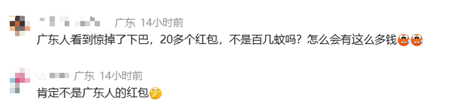 广东网友则表示:惊呆了!20多个红包怎么会有这么多钱。