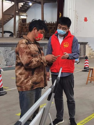 村口卡点在金峰镇,夜里的时候温度下降得特别快,党员干部即便裹着大衣依旧站在那里。他们针对每个要进村的人不停地引导去测温、扫码登记,碰到不会操作手机的老人,会亲自手把手帮忙去弄。这样的一种阵势让村民不停地感慨,守得这般严格,病毒确实没办法钻空子了。