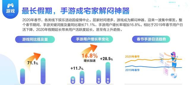 先前线下的娱乐活动停止了,于是线上可支配的时间增多了。在春节那段时期之内,手机游戏的提及数量跟同比情况相比增长了百分之七十一点一,游戏已然成为全民性的消遣途径。然而“停课不停学”的举措让在线教育迎来了有史以来最为庞大的流量呈现,关键词“直播课”相关的提及数量相较于去年暑假增长幅度超过了百分之八百。