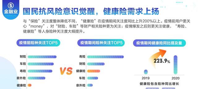 但危机却致使意识产生转变,“医疗险”的关注度在同比方面急剧增长了480%,此增长幅度远远超过了其他险种,这次疫情使得更多人认识到健康保障具有重要意义,保险行业的内部结构正处于发生调整的状态,健康险成为了新的增长点。