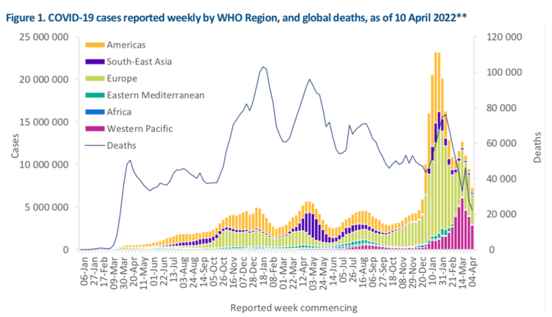 依据世卫组织4月12日发布的疫情周报,在4月4日至10日的这一周时间里,全球新增确诊病例数量超过了700万例,与此同时,新增死亡病例数量约为2.2万例。这两个关键指标已经连续三周呈现出下降的趋势,在这些关键指标里,死亡病例数更是达到了自2020年大流行早期开始以来的最低水平。