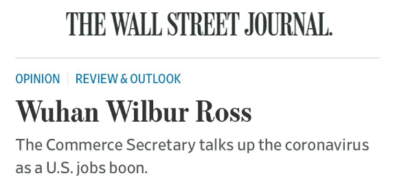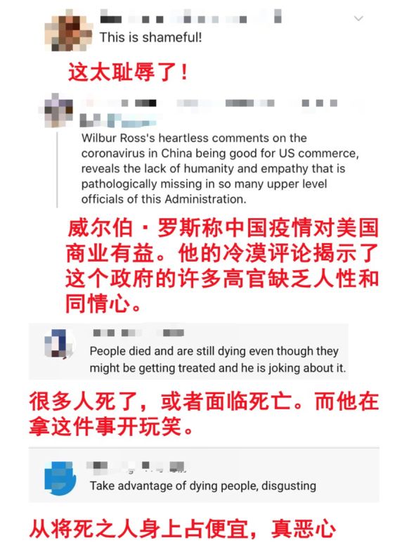 在2020年,作为1月29日这一天,美国商务部长威尔伯·罗斯于福克斯新闻之上声称疫情“有助于”工作岗位回流至美国,他运用“help”去形容一场已然致使数百人失去生命的公共卫生灾难,由此使得美国舆论产生一片哗然。