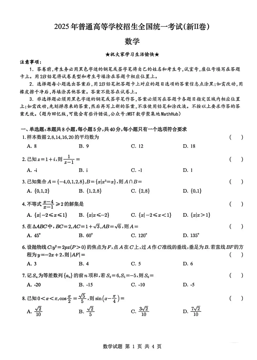 第19题的解答题里的导数题设计得极为巧妙,第二问要通过构造函数来证明不等式。第21题作为压轴题,是以集合新定义的形式呈现的,考查的是逻辑推理能力。当下,我们依据考生的回忆整理了一部分试题,完整版的试卷以及答案解析正在紧锣密鼓地制作当中。