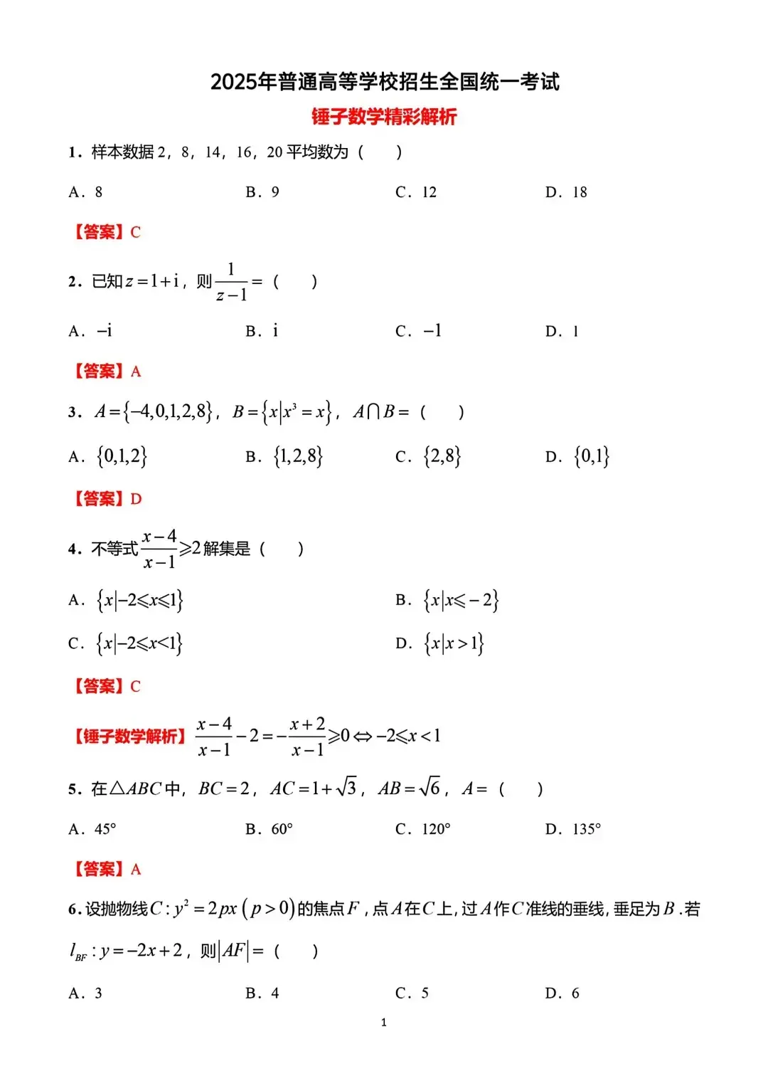 2025高考数学五套试卷真题解析汇总,考生速看对照估分