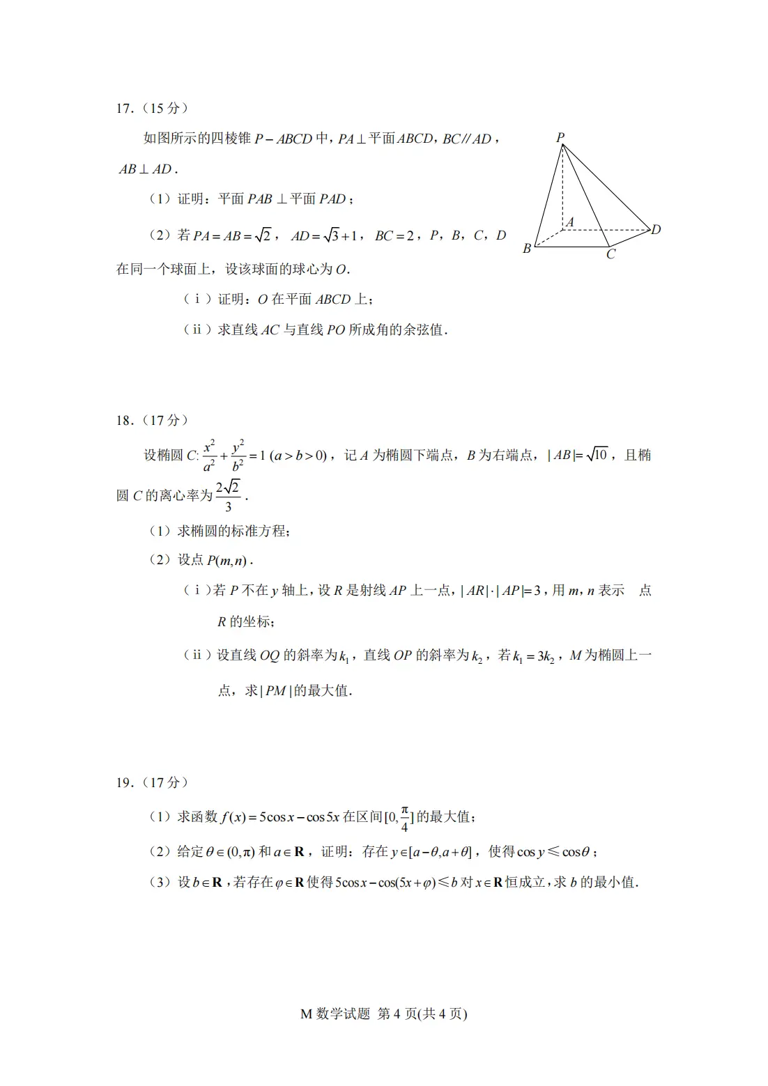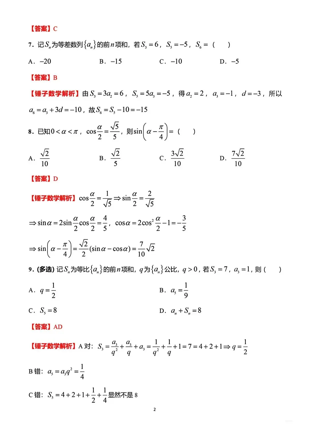 让部分考生感到棘手的是第19题数列新定义题,选择题第8题考查球体内切问题,其计算量适中,我们已整理完整试卷以及答案解析,考生可逐题对照着估算自身的得分情况,在解析里每道题都配有详细的步骤说明用以帮助对解题思路的理解。