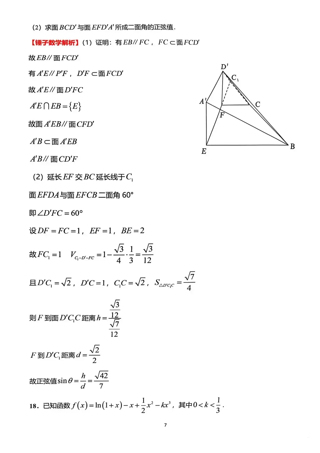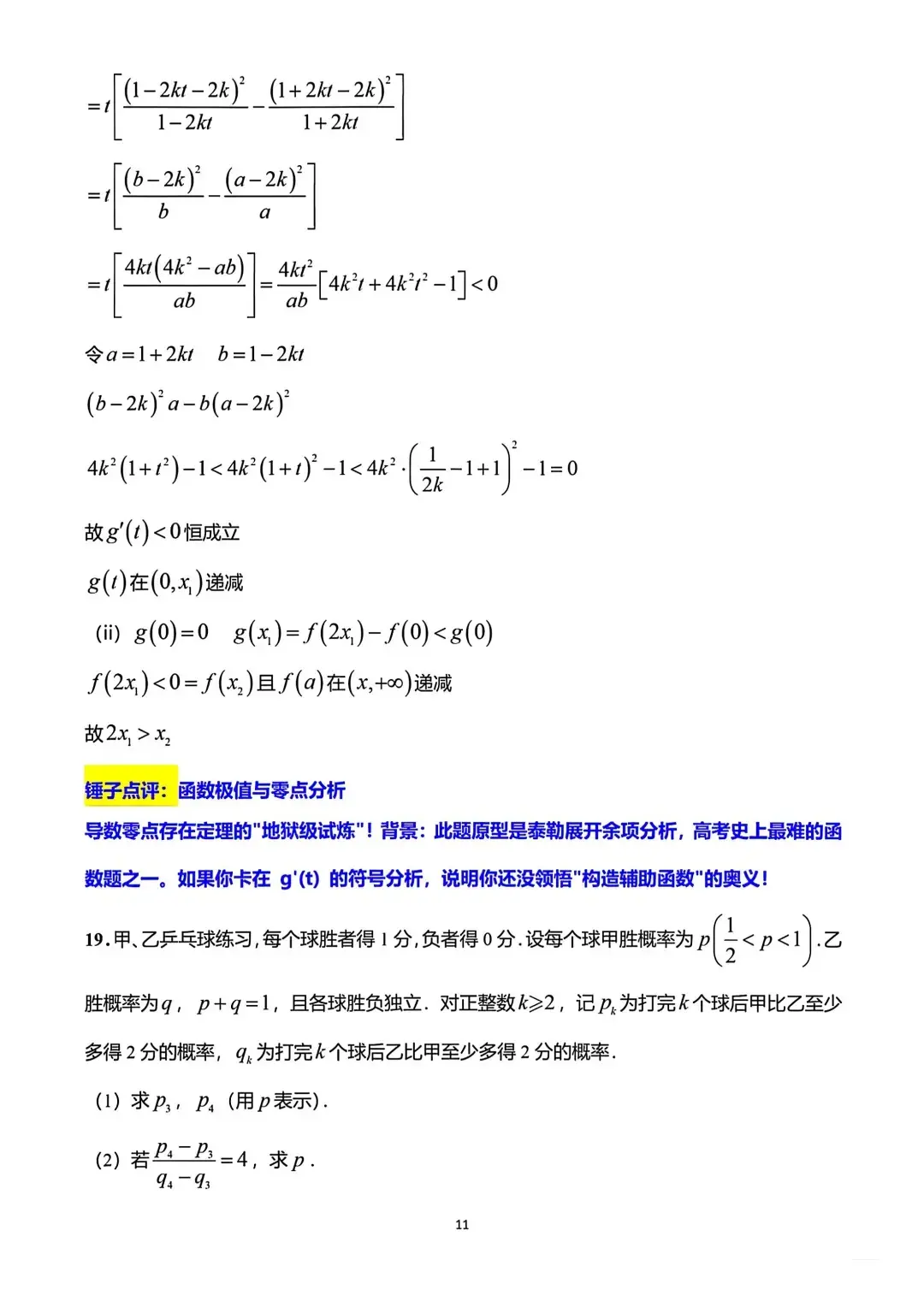 在第20题那里,导数压轴题设有三个小问,它们是层层递进的。其中,第一问是求切线方程,这一问相对比较简单些,第二问是要证明不等式,做这个得构造恰当的函数,第三问是恒成立问题,解决它需要分离参数。而答案解析里特别着重强调了计算过程当中的易错点,以此来帮助考生避开常见的失误。