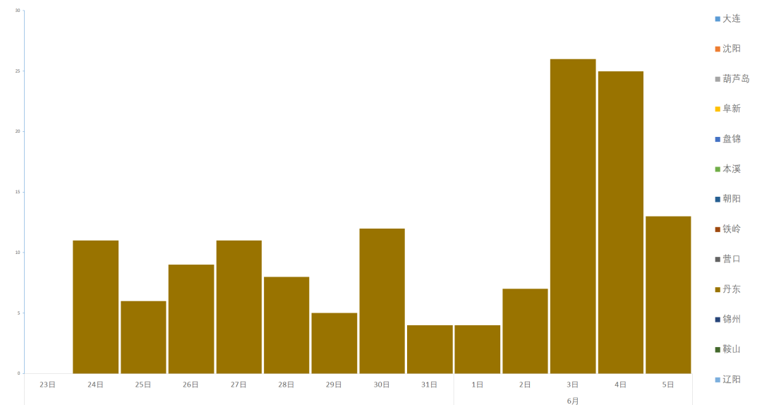 丹东疫情延续了13天,总计有141例感染者,昨天新增了13例无症状感染者。病毒基因测序表明与4月疫情并非同源,并且感染者分布在40多个小区,各个小区之间暂时没有发现存在关联。辽东学院已经连续5天没有新增情况,然而社区筛查依旧不断报出阳性,涉及环卫工人、商超店员、退休老人,多数人的近7天活动轨迹仅仅局限于小区内部。