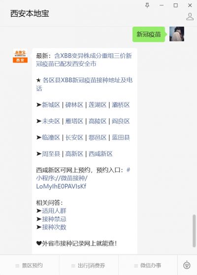 除去官方小程序之外,对【西安本地宝】公众号加以关注,这也是一种相当不错的查询方式。于对话框之中回复关键词【新冠疫苗】,如此便能够获取西安最新的三价重组新冠疫苗接种单位名单,其中涵盖预约电话以及网上预约入口,其信息更新较为及时。