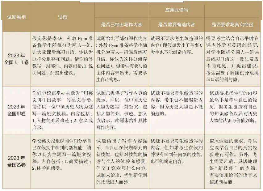 2023年,英语全国卷的应用文写作出现了重大变化,题目仅仅给出情景,却并不给予具体内容,考生必须结合自身的真实经历以及想法进行写作,比如写邀请信时,不能套用模板,而要真的去思考邀请谁,因何原因发出邀请,以及打算聊些什么。