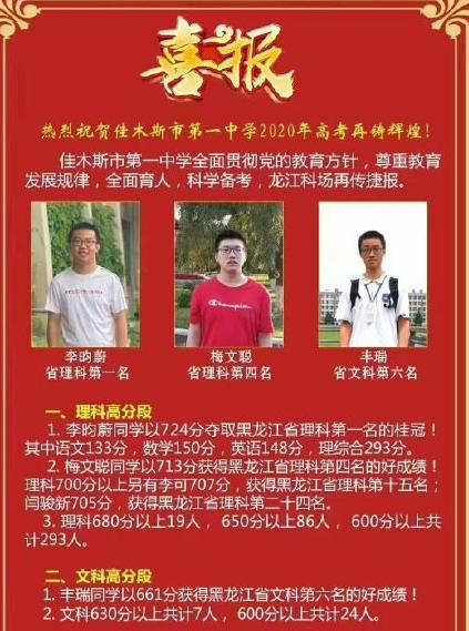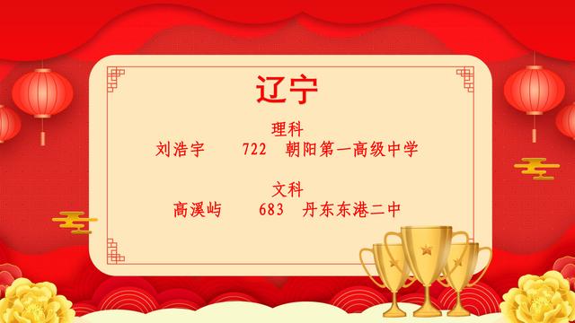 佳木斯一中的李韵蔚,取得724分,成为黑龙江理科状元,大庆实验中学的张姝雅,文科最高分是677分。辽宁朝阳一高的刘浩宇,是理科最高分,722分的分数令人惊叹不已。东港二中的高溪屿,是文科状元,总分683分。