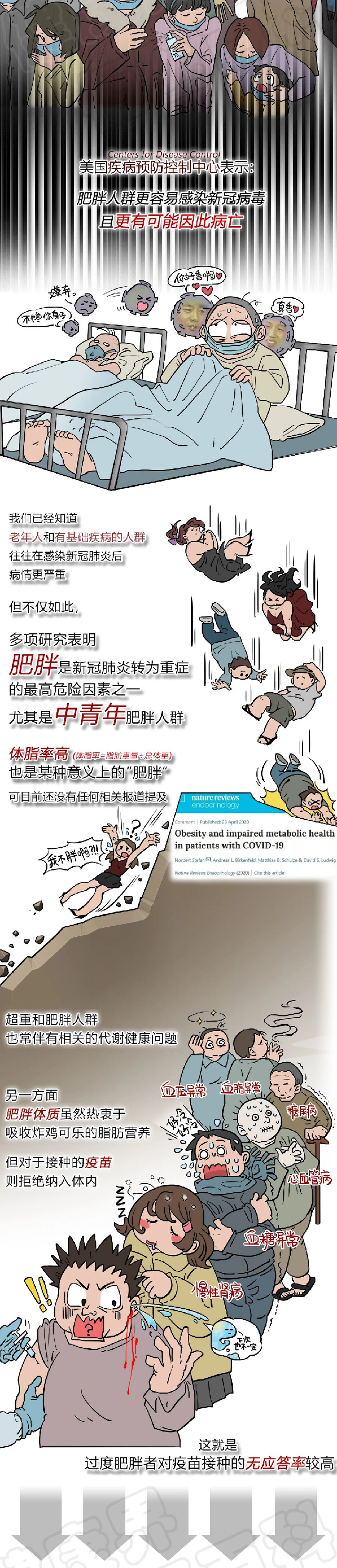 刊登于《自然综述·内分泌学》2020年7月的研究,清晰地表明,肥胖人群感染新冠以后,发展成重症的风险,是体重正常人群的3.13倍。而且,60岁以下肥胖者的住院率,比同龄正常体重者高出两倍有余。