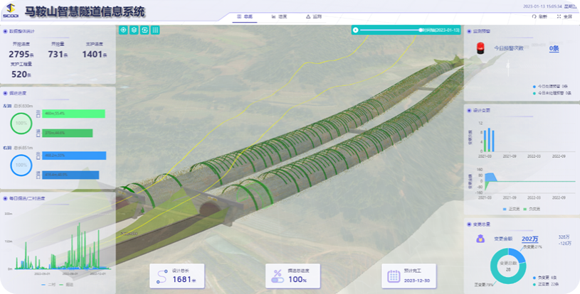 公司将软硬件技术予以了充分高度集成,自主研发出马鞍山隧道信息化系统,依托BIM模型作为数据载体,进而研发出可视化进度管理系统。此情形使得管理人员能够实时目睹三维的工程进度走向,恰似置身于一场高精度模拟游戏之中。
