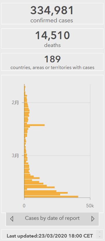 首例确诊之后,人类历经整整67天,全球病例才达到10万。而达到第二个10万时,时间急剧缩短至11天。更是令人惊愕的是,突破第三个10万用时仅4天。截至欧洲中部时间3月23日18时,全球确诊数量已达334981例,涉及189个国家以及地区。这种加速扩张的态势表明,病毒传播已然步入一个全新阶段,任何国家都没办法独善其身。
