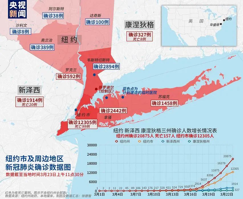 依据约翰斯·霍普金斯大学给出的数据,截止美东时间23日中午时分,美国确诊的病例已然达到40961例,死亡的病例有479例。身为全球医疗资源最为丰富的国家,美国同样没有能够阻拦病毒那较快的传播。纽约州变成了重灾区,确诊的病例突破了2万例,到达了20875例,医疗系统面临着严峻的考验。