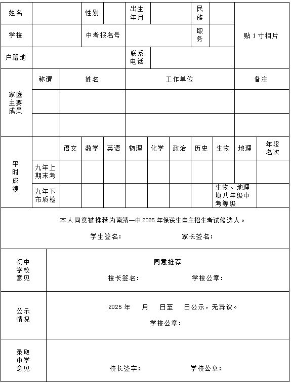 具有南靖县学籍的考生,要准备有近期 1 寸免冠彩色照片贴着的推荐表,各个初中校会把审核通过了的带有学生花名册以及推荐表纸质版的两份材料,分别送去县中招办与南靖一中教务处。与此同时学校亦会运用 Excel 表格将那推荐学生的花名册发送至指定邮箱。省略。