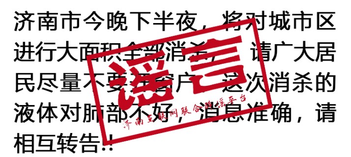 3月31日,一则消息又传了出来,消息内容是今晚12点要对全市主干道进行大面积消杀。这则通知其实早在两年前就被辟谣了,而且连标点符号都没做更改。济南市卫健委根本就没有发布过这种类似的安排,同时环卫部门也从来没有过夜间全城消杀的计划。然而却有人把旧截图翻了出来,还删掉年份后直接发到了微博。