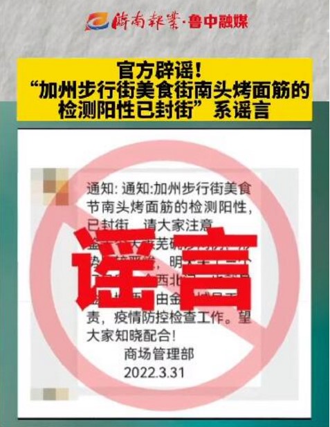 4月1日,莱芜区加州步行街那儿,一家烤面筋摊传出“检测阳性”且“已封街”的消息,这消息让周边的商户彻底傻眼发懵了;摊主老张第二天出摊的时候,发现顾客都躲着他走;隔壁的奶茶店一上午竟然只卖出了三杯;后来莱芜区经过核查证实这消息纯属捏造,根本就没有任何阳性病例,而且步行街一直都保持着正常营业。