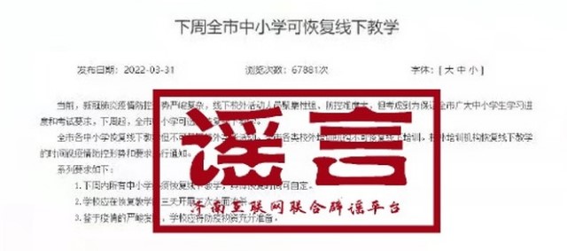 4月1日,“下周恢复线下教学”的消息反复出现,随后又反复被辟谣。4月5日,同样的情况再次上演。4月7日,此消息依然如此。济南市教育局的官方公号评论区里挤满了家长,其中高三考生家长急得失眠,双职工家庭则发愁孩子没人看。而造谣者仅把外地新闻里的地名替换成“济南”,将日期往后推一周,便炮制出了所谓内部消息。