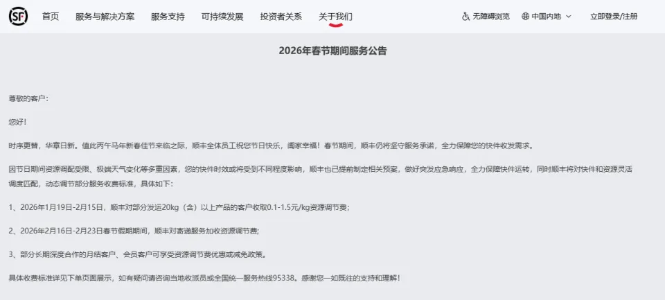 顺丰官网所发布的公告表明,收费方面出现调整,主要是源于节日期间资源调配受到限制,以及极端天气发生变化等多种不同因素。为保障快件能够正常进行运转,顺丰预先制定了相关预案,做好了突发情况下的应急响应,并且同时对部分服务收费标准进行动态调节。