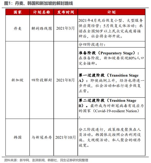韩国、新加坡归属预期管理模式范畴,韩国于2021年9月起便开始进行相关吹风动作,到10月底时直接公布了“与新冠共存”路线图,将防疫目标由防感染转变为防重症以及恢复生活,新加坡同样于同年8月公布了四阶段计划,以使民众能够清晰知晓每一步所应抵达之处。